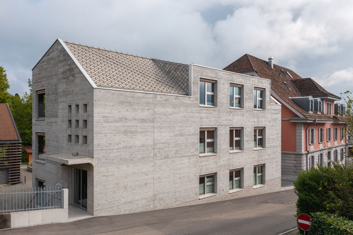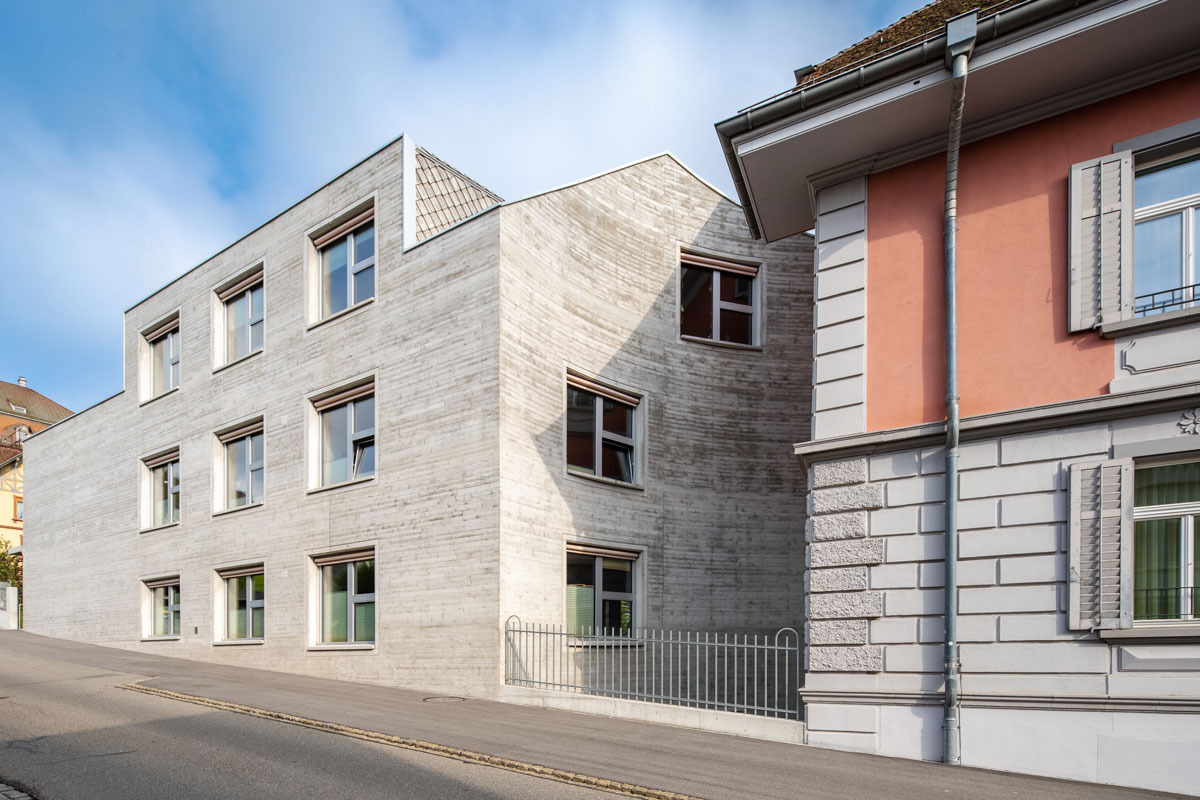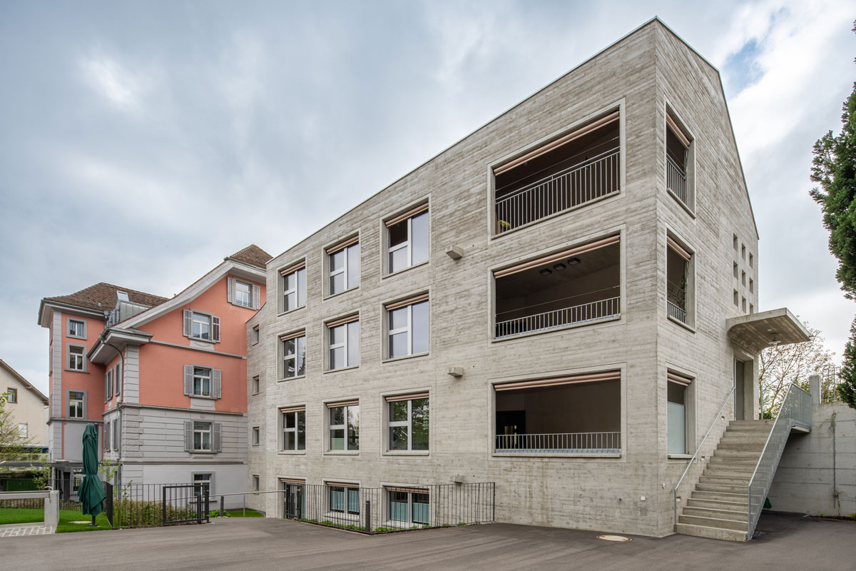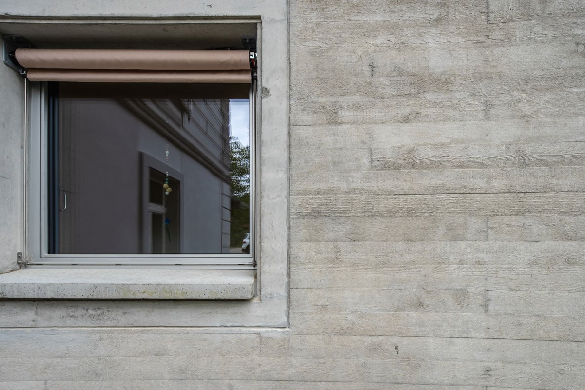 Schonende Reinigung der Sichtbetonfassade mit Heisswasserhochdruckreiniger. Betonkosmetik, Tiefenhydrophobierung und Graffitischutz.
